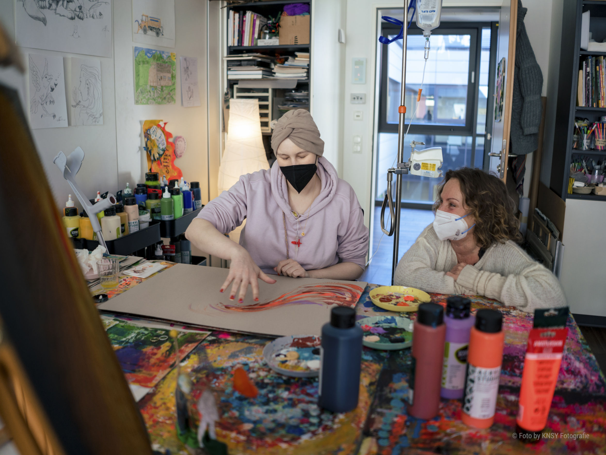 Aber auch die Patienten auf den Stationen WTZ 1, WTZ 2 und WTZ 3 begleite ich mit. Seit 2021 kam die Arbeit mit krebskranken Jugendlichen und jungen Erwachsenen auf der AYA Station hinzu. Als Kreativtherapeutin arbeite ich hauptsächlich mit dem Ansatz der kreativen Leibtherapie. Darüber hinaus begleite ich Menschen im Rahmen der Tanztherapie an Volkshochschulen und in privaten Kleingruppen, sowie Wachkoma Patienten in verschiedenen Wohngruppen.